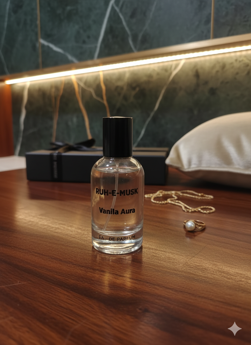 Vanilla Aura is a warm and sensual womenโs perfume that captures the timeless charm of pure vanilla blended with soft florals and musk.